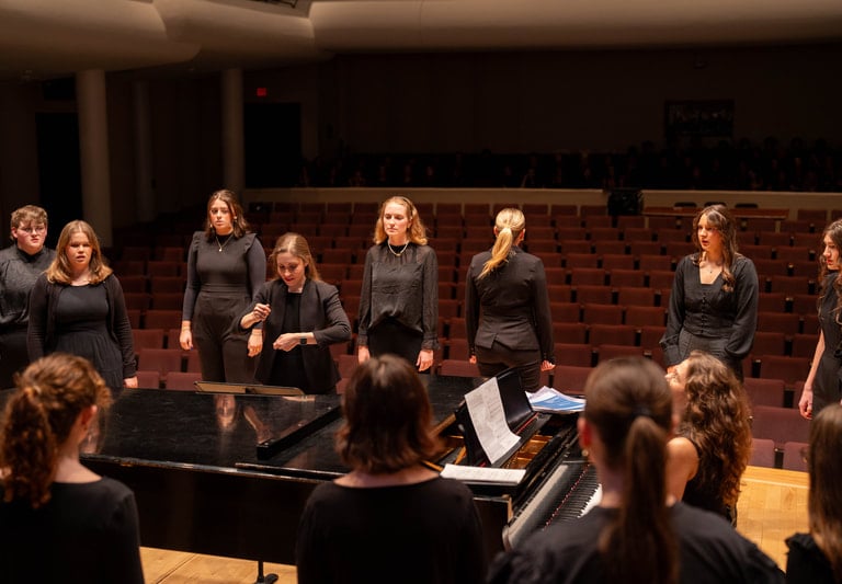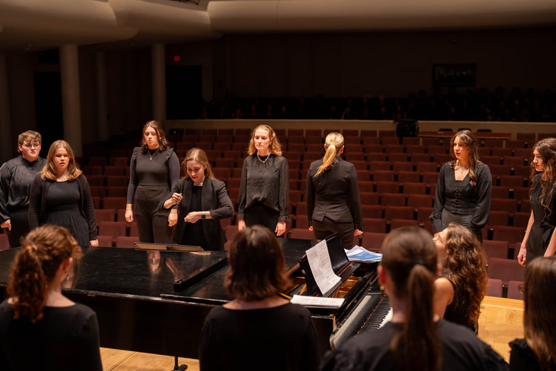 Her commitment to the choral arts extends beyond the classroom, as she actively serves in leadership positions with the American Choral Directors Association and National Collegiate Choral Organization. As a conductor/clinician, Luttig leads honor choirs, clinics, and choral festivals at the state and regional levels throughout the United States. Inspired by her work with varying ages of choirs throughout her career, her research in topics such as conducting pedagogy, inclusive programming, student engagement, and representation in the choral arts have led to presentations and research posters at ACDA and NAfME professional development conferences.